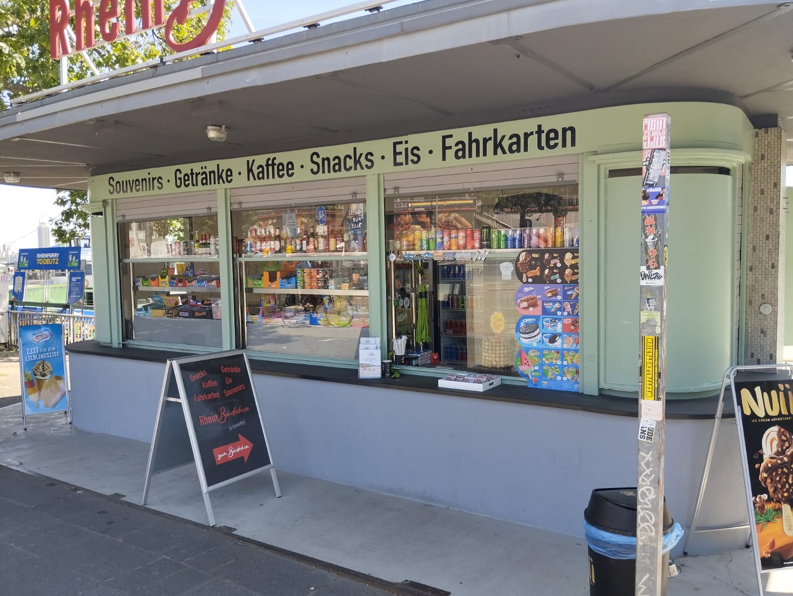 Übersicht Speisen & Getränke RheinBüdchen Köln Übersicht Speisen & Getränke Softgetränke VIO Wasser Still/Sprudel Coca Cola Coca Cola Zero 0,5l0,33l0,33l 2,20 €2,30 €2,30€ Bier Wein & Sekt Cocktails Weitere alkoholische Getränke Kaffee & Tee Snacks Eis Souvenirs Drehzubehör Sonstiges Montag bis Dienstag Montag bis Dienstag geschlossen geschlossen